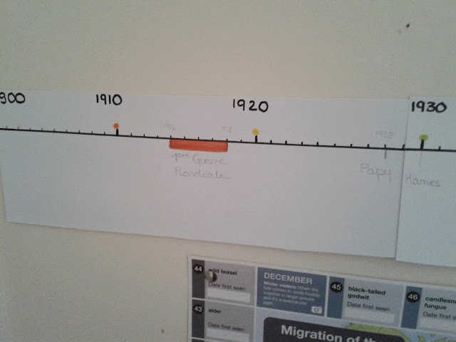 Une nouvelle frise dans laquelle en plus des grands évènements historiques, nous ajoutons les années de naissance des membres de la famille et des amis pour mieux se repérer dans le temps. Ainsi on verra peut-être que non! il n'y avait pas de carrosses à la place des voitures quand Maman était petite!